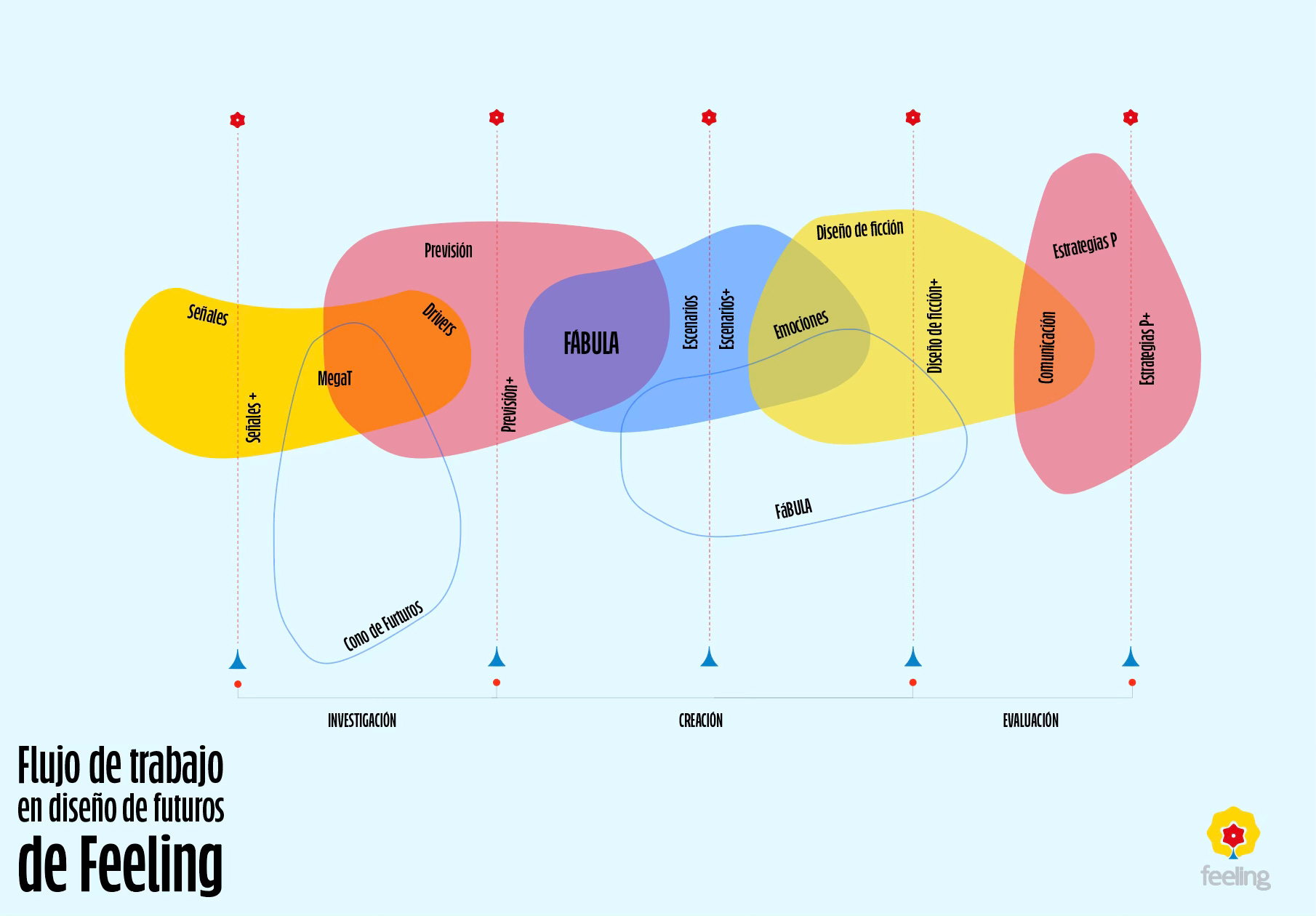 FÁBULA se encuentra hoy en una fase de diseño de imagen, diseño editorial, y desarrollo de herramientas de tecnológicas y de comunicación. Pronto estará disponible en la web de Feeling como una metodología abierta, pensada para personas diseñadoras, investigadoras, activistas, gobiernos y organizaciones, que sientan que los futuros que se repiten, ya no alcanzan.